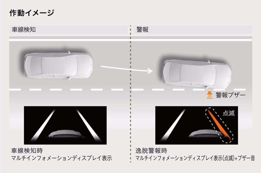 ■レーンディパーチャーアラートはあくまで運転補助機能です。本機能を過信せず、必ずドライバーが責任を持って運転してください。