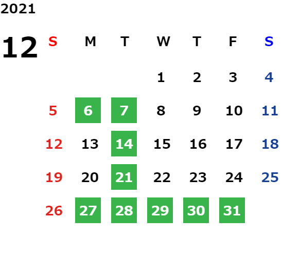 営業日カレンダー