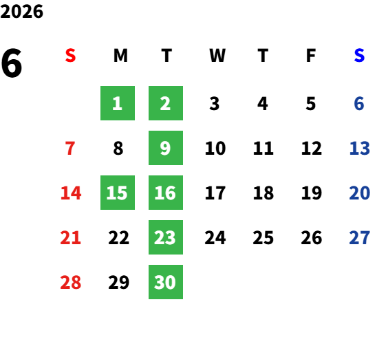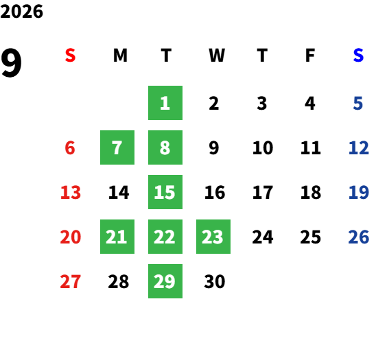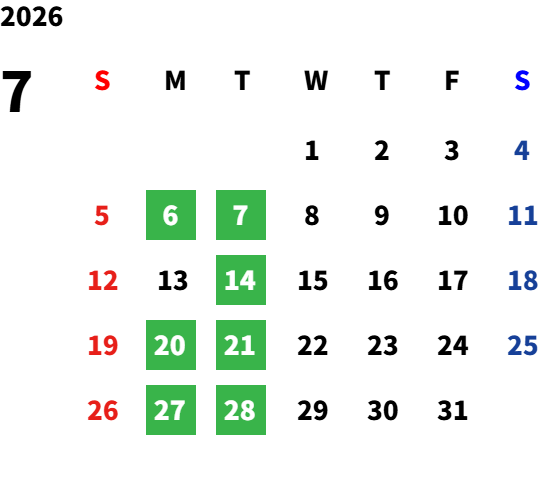 第一月曜日・毎週火曜日・祝祭日
