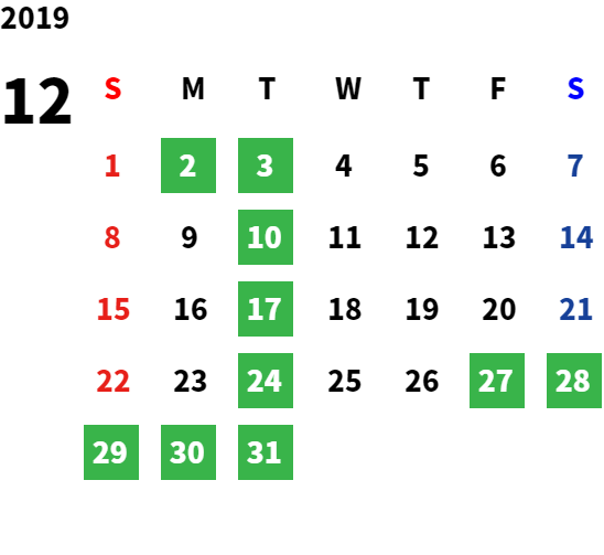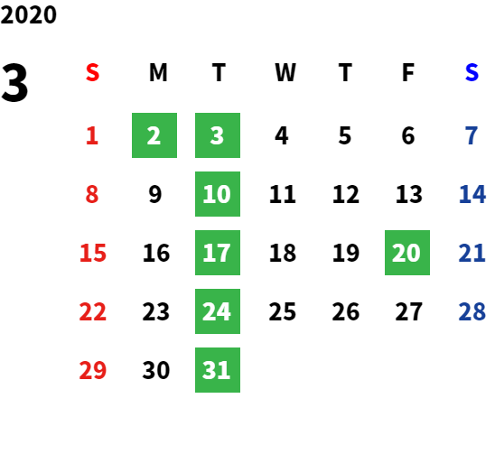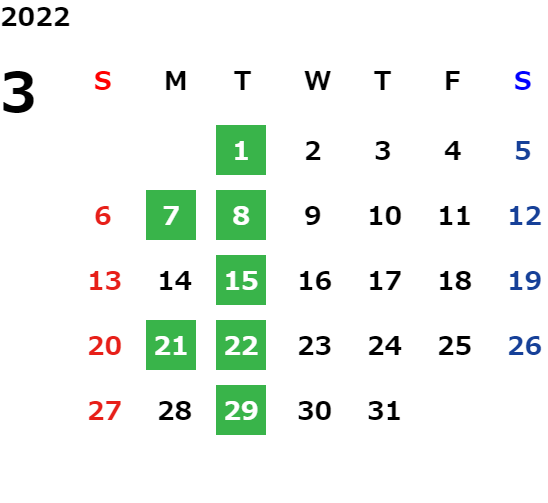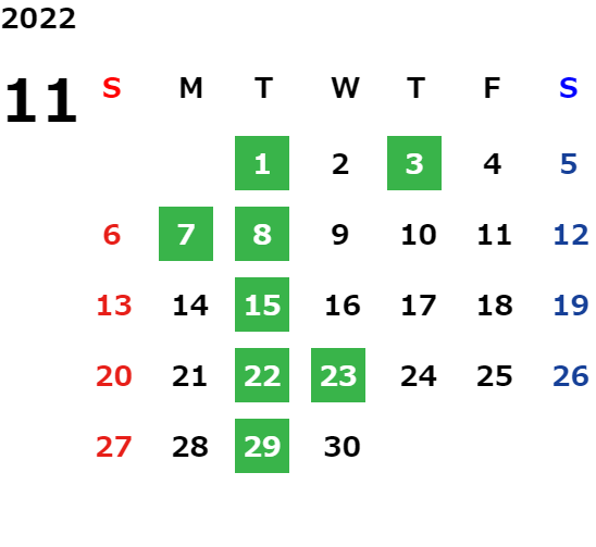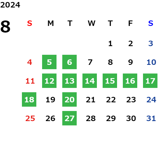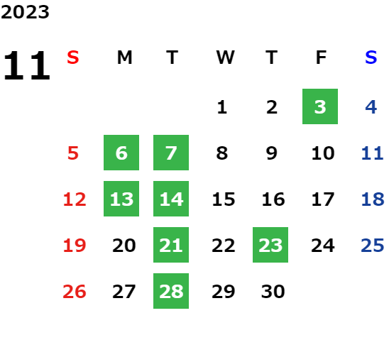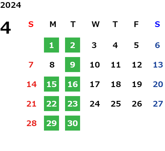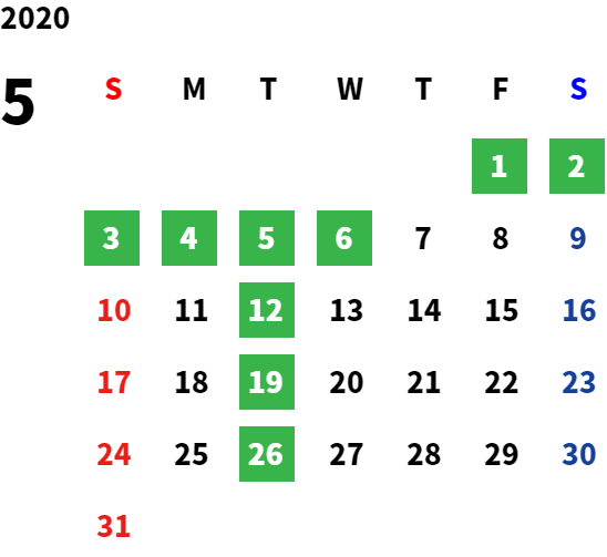 営業日カレンダー