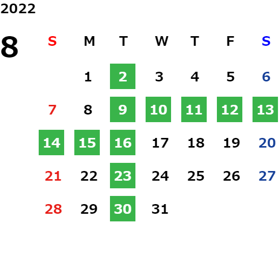 熊本トヨペットの夏季の休業期間は下記の日程とさせていただいておりますのでお知らせいたします。